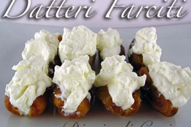 I datteri farciti con crema di ricotta sono un antipasto elegante che unisce la dolcezza naturale della frutta alla delicatezza di una crema montata. Il contrasto tra la polpa morbida e leggermente fibrosa del dattero e la spuma fresca e zuccherina crea un'esperienza sensoriale raffinata e sorprendente.
