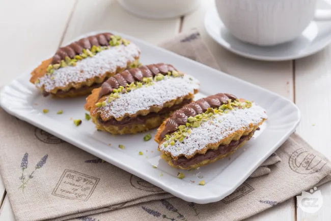 L'impasto, arricchito con burro e latte, garantisce una consistenza umida e fondente che si sposa perfettamente con il cuore di Nutella. Il contrasto tra la polvere di zucchero a velo, la granella di pistacchi e la crema spalmabile crea una presentazione elegante e invitante.