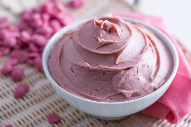 Ideale per farcire e decorare torte, per accompagnare dessert al cucchiaio o come salsa raffinata per frutta fresca, questa ganache si presta a molteplici usi in pasticceria. È una preparazione versatile che stupisce per il suo colore senza aggiunte artificiali e si conserva bene, diventando una base preziosa per creazioni dolci sofisticate.