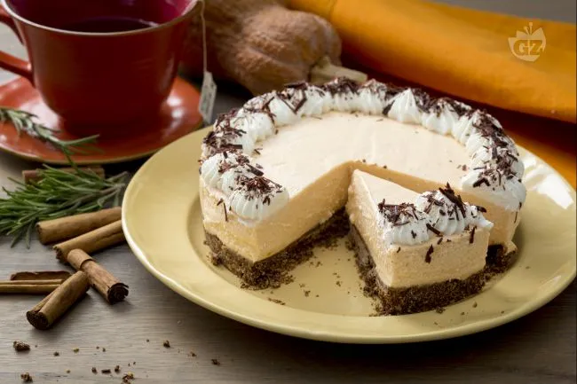 Una cheesecake che unisce la cremosità della ricotta al dolce e terroso sapore della zucca, arricchita da un tocco speziato di cannella, cardamomo e rosmarino. La base croccante di biscotti e cioccolato fondente crea un contrasto di consistenze perfetto, mentre la decorazione finale con panna montata e scaglie di cioccolato aggiunge un tocco di eleganza. La purea di zucca cotta al vapore con le spezie infonde alla crema un profumo avvolgente e un sapore autunnale, bilanciato dalla freschezza della ricotta.