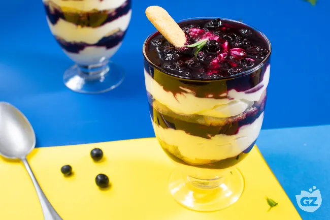Un dessert stratificato che conquista per il perfetto equilibrio tra la cremosità della mousse al cioccolato bianco e l'acidità vivace del coulis di mirtilli. La delicatezza dei Pavesini ammorbiditi nel latte crea un piacevole contrasto di consistenze, mentre la scorza di limone aggiunge una nota aromatica fresca e luminosa.