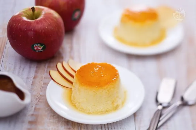 Un dessert al cucchiaio che unisce la classica cremosità del creme caramel alla rustica dolcezza della mela, arricchito da una salsa di fichi intensa e vellutata. La consistenza è un perfetto equilibrio tra la morbidezza della crema, il fondo caramellato croccante e la salsa fruttata che avvolge ogni boccone.
