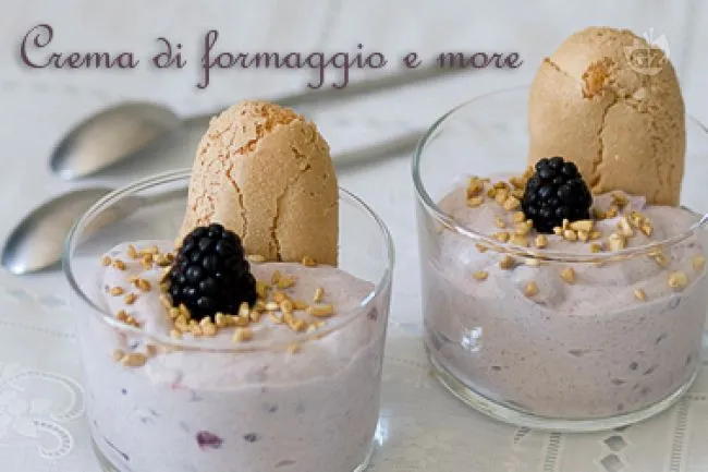 Il mascarpone dona una consistenza vellutata e ricca, mentre la ricotta vaccina alleggerisce l'insieme con la sua nota fresca e leggermente granulosa. Le more, schiacciate leggermente, rilasciano il loro succo viola intenso, creando venature naturali nella crema e un perfetto equilibrio tra dolce e acidulo, esaltato dal marsala all'uovo.