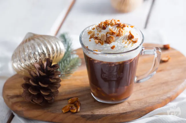 Questa cioccolata calda è un'esperienza sensoriale a strati, dove la cremosità intensa del caffè e del cioccolato fondente incontra la croccantezza delle arachidi caramellate e la morbidezza del caramello salato. Un abbraccio invernale che unisce il comfort di una bevanda calda alla complessità di un dessert.