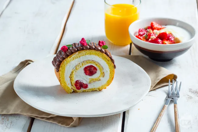 Queste girelle offrono un'esperienza di sapori e consistenze raffinata e piacevolmente contrastante. La base è una soffice pasta biscotto, che avvolge una crema di ricotta leggera e delicatamente aromatizzata al limone, arricchita dalla freschezza acida dei lamponi freschi. La decorazione finale con Nutella, cioccolato bianco e menta aggiunge un tocco di golosità intensa e un finale fresco, creando un equilibrio perfetto tra dolce, cremoso e fruttato.