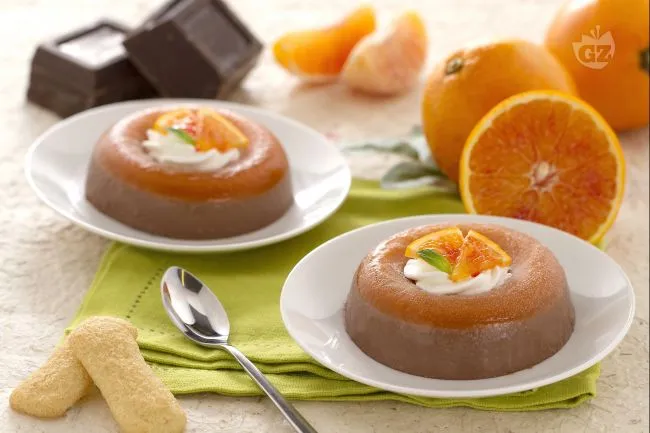 La scorza d'arancia grattugiata e il succo filtrato donano alla base una nota vibrante e naturale, mentre il cioccolato fondente fuso con burro e latte garantisce una cremosità avvolgente. La panna montata finale, con la sua leggerezza, bilancia la ricchezza del budino, completata da fettine d'arancia e menta per un tocco di colore e freschezza.
