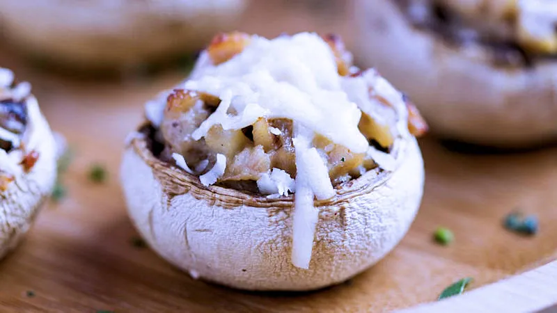 I champignons ripieni sono un antipasto elegante e sorprendente, dove la delicatezza dei funghi si sposa con un ripieno cremoso e sapido. La doppia cottura in forno garantisce una consistenza perfetta: le cappelle diventano tenere e succose, mentre la superficie si ricopre di una croccante doratura grazie al pangrattato. Un piatto che conquista per il contrasto tra la morbidezza del ripieno e la croccantezza finale.