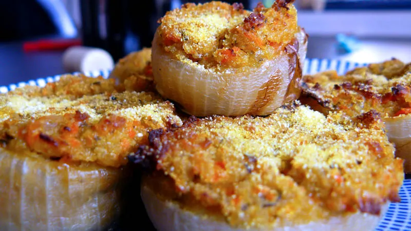 Le cipolle ripiene sono un secondo piatto rustico e invitante, dove la dolcezza caramellata della cipolla cotta al forno incontra un ripieno saporito e morbido di carne macinata. Il risultato è un piatto unico, dal cuore caldo e avvolgente, perfetto per una cena familiare che scalda il palato. La cipolla, lessata per ammorbidirsi, diventa un involucro naturale che si addolcisce in cottura, contrastando piacevolmente con la sapidità del macinato di manzo e del parmigiano.