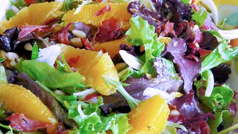 Un'insalata che gioca magistralmente sui contrasti: la croccantezza del finocchio si sposa con la polpa succosa dell'arancia, mentre le noci tostate aggiungono una nota rustica e un piacevole fondo amarognolo. La salsa allo yogurt, arricchita dal succo d'arancia, avvolge gli ingredienti con una cremosità delicata e un tocco di freschezza agrumata che alleggerisce il piatto.