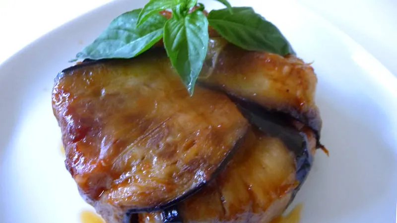 La melanzana, grigliata fino a ottenere una morbidezza setosa, dialoga con la filante mozzarella in un abbraccio che viene esaltato dalla salsa di pomodoro. Qui lo scalogno caramellato dona una nota dolce e profonda, mentre il basilico fresco spezza con la sua vivacità erbacea la ricchezza del formaggio, creando un equilibrio perfetto tra l'acidulo brillante e il fondo burroso.