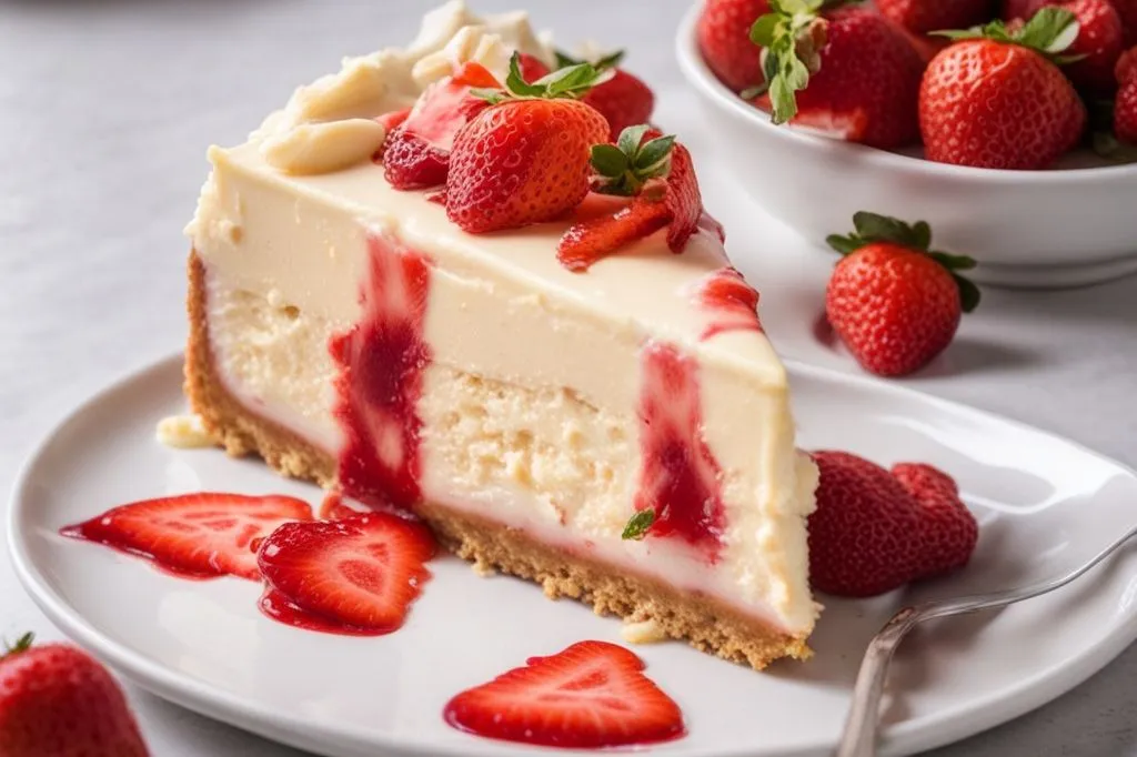 Una cheesecake alle fragole che conquista per la sua cremosità vellutata e il contrasto tra la base croccante di biscotti e la freschezza della frutta. La preparazione senza gelatina valorizza il sapore autentico delle fragole, che si trasforma in una copertura leggermente addensata e brillante, perfetta per esaltare la delicatezza della crema al formaggio.