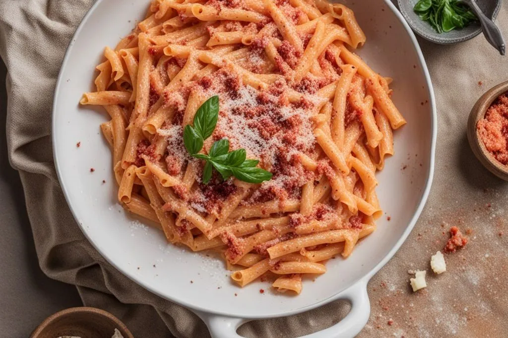 speziato, perfettamente bilanciato dalla dolcezza della pancetta e dalla rotondità della polpa di pomodoro. La pasta, cotta direttamente nel sugo, assorbe tutti i sapori diventando il veicolo ideale per questa esperienza gustativa intensa e soddisfacente.