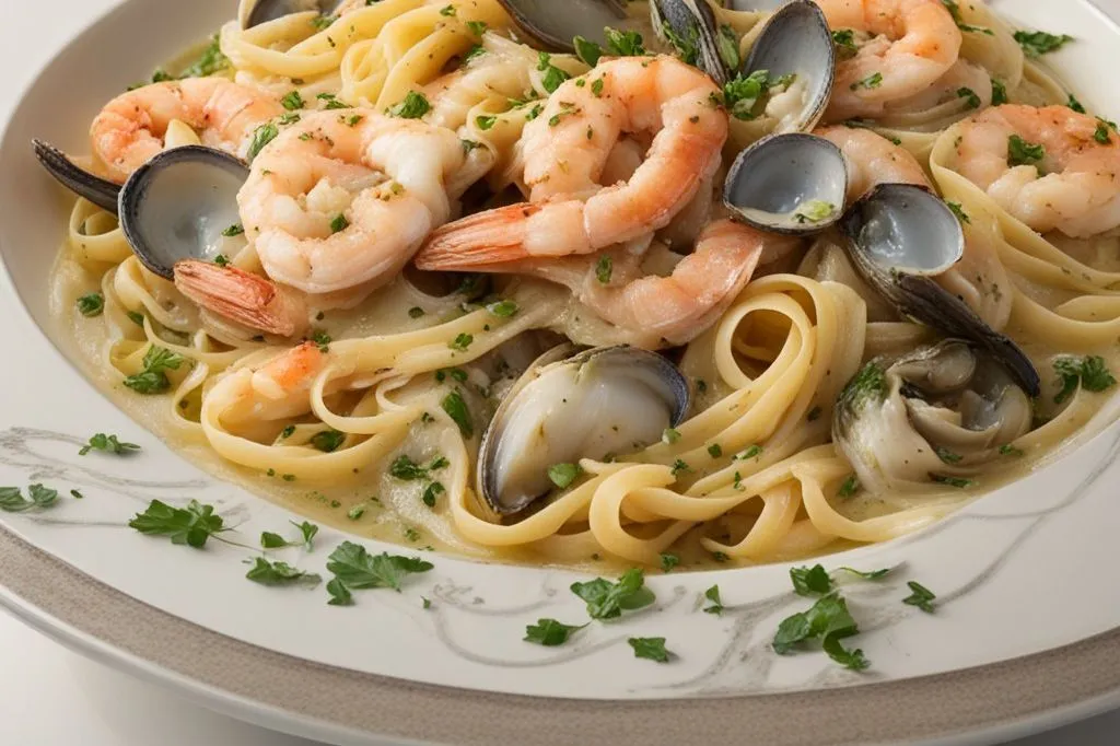 Le cipolle di Tropea, con la loro nota dolce e leggermente piccante, si fondono con la carota e il sedano in un soffritto che costituisce l'anima del piatto. Il preparato di frutti di mare, scongelato a temperatura ambiente, aggiunge complessità e un piacevole contrasto di consistenze tra la morbidezza delle verdure e la tenerezza dei molluschi.