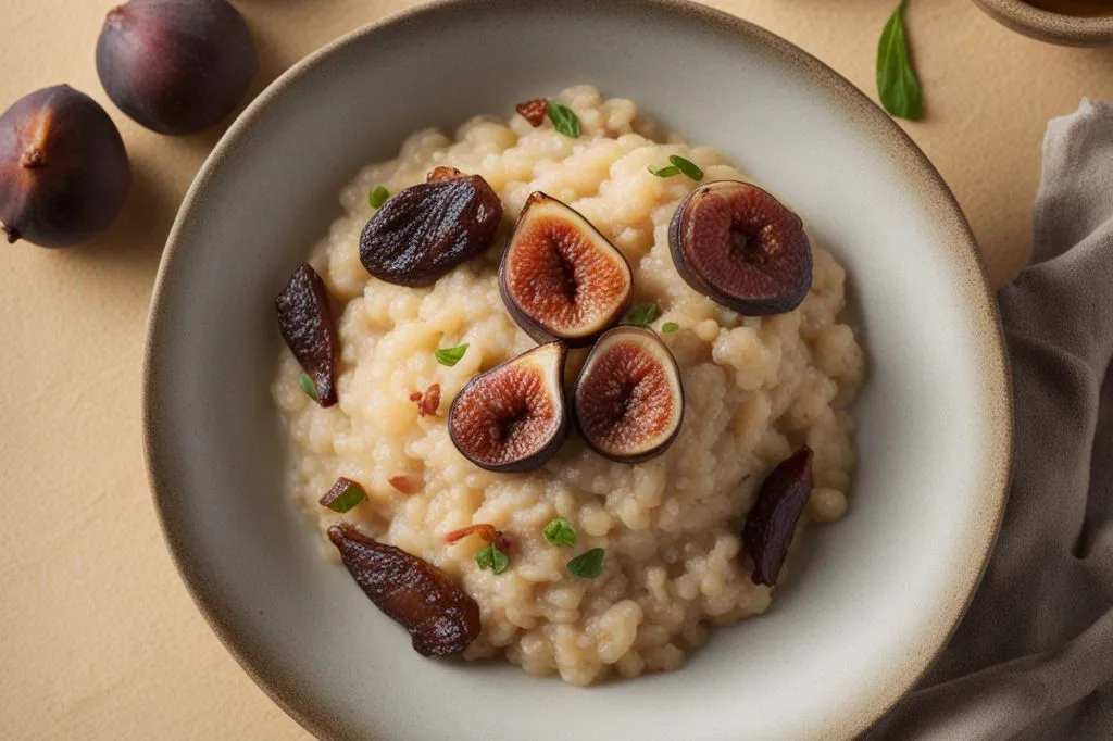 Un risotto che gioca su contrasti sorprendenti: la cremosità del riso parboiled si sposa con la dolcezza intensa dei fichi, che in cottura rilasciano note caramellate. Il tutto è bilanciato dal gusto sapido e dalla croccantezza dello speck, che aggiunge profondità e un tocco rustico.