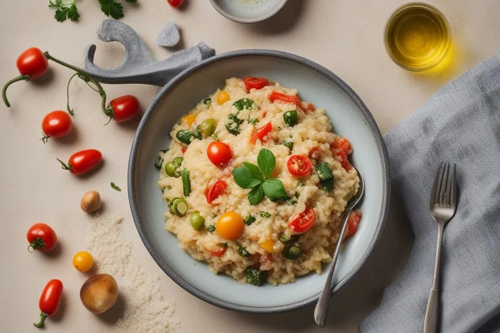 Un risotto che celebra la generosità dell'orto, dove la cremosità avvolgente del riso incontra il croccante tenerume delle verdure saltate. Ogni boccone regala un gioco di consistenze: i cubetti di melanzana si sfaldano delicatamente, il peperone mantiene una lieve resistenza, mentre i pomodori pachino esplodono in note agrodolci. La cipolla stufata dona una base aromatica profonda ma mai invadente, bilanciata dalla freschezza erbacea del prezzemolo tritato al momento.