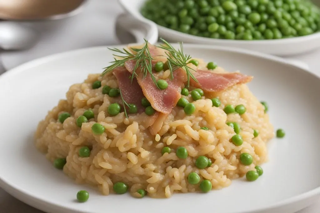 Il segreto risiede nell'equilibrio magistrale tra la dolcezza tenera dei piselli, la sapidità intrigante del prosciutto che si sfalda, e la ricchezza burrosa del formaggio che lega il tutto in una manteca setosa. Lo scalogno stufato nell'olio extravergine fornisce una base aromatica profumata, mentre l'erba cipollina fresca, aggiunta a fine cottura, regala un tocco di vivacità che rischiara l'insieme. Perfetto per una domenica in famiglia o per una cena informale che vuole lasciare il segno, questo piatto incarna l'essenza del comfort food di qualità: apparentemente semplice nella preparazione, ma capace di regalare soddisfazione e convivialità ad ogni boccone, conquistando sia per la sua sostanza che per la sua inconfondibile croccante corona dorata.