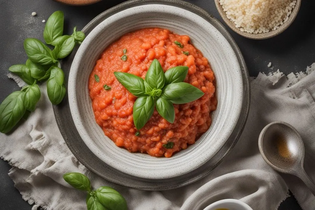 Un primo piatto che racchiude l'essenza della cucina semplice e genuina, dove il riso Arborio si fonde con un sugo di pomodoro dal sapore intenso e rotondo. La consistenza è cremosa e avvolgente, con i chicchi che rimangono ben distinti ma perfettamente legati dalla salsa, mentre il profumo del basilico fresco si sprigiona al momento del servizio, regalando una nota di freschezza inaspettata.