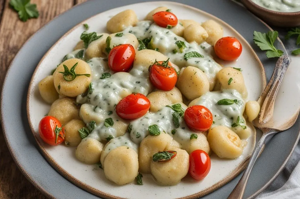 Un primo piatto che unisce la morbidezza degli gnocchi alla ricchezza di una crema al formaggio erborinato, arricchito dal contrasto di verdure estive. La salsa al gorgonzola, vellutata e intensamente aromatica, avvolge perfettamente ogni boccone, mentre le zucchine fritte aggiungono una piacevole nota croccante e i pomodorini datterini portano freschezza e un tocco di acidità equilibrante. Il gorgonzola, con il suo carattere deciso e la cremosità che si scioglie a contatto con il calore, è il vero protagonista di questa preparazione.