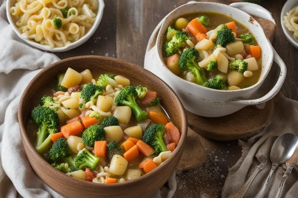 I broccoletti, privati del gambo, regalano note leggermente amarognole e una consistenza delicata, mentre carote e patate si sciolgono quasi in crema, addolcendo l'insieme. L'olio extravergine a crudo, aggiunto al momento di servire, è il tocco finale che unisce i sapori e dona un fruttato elegante.