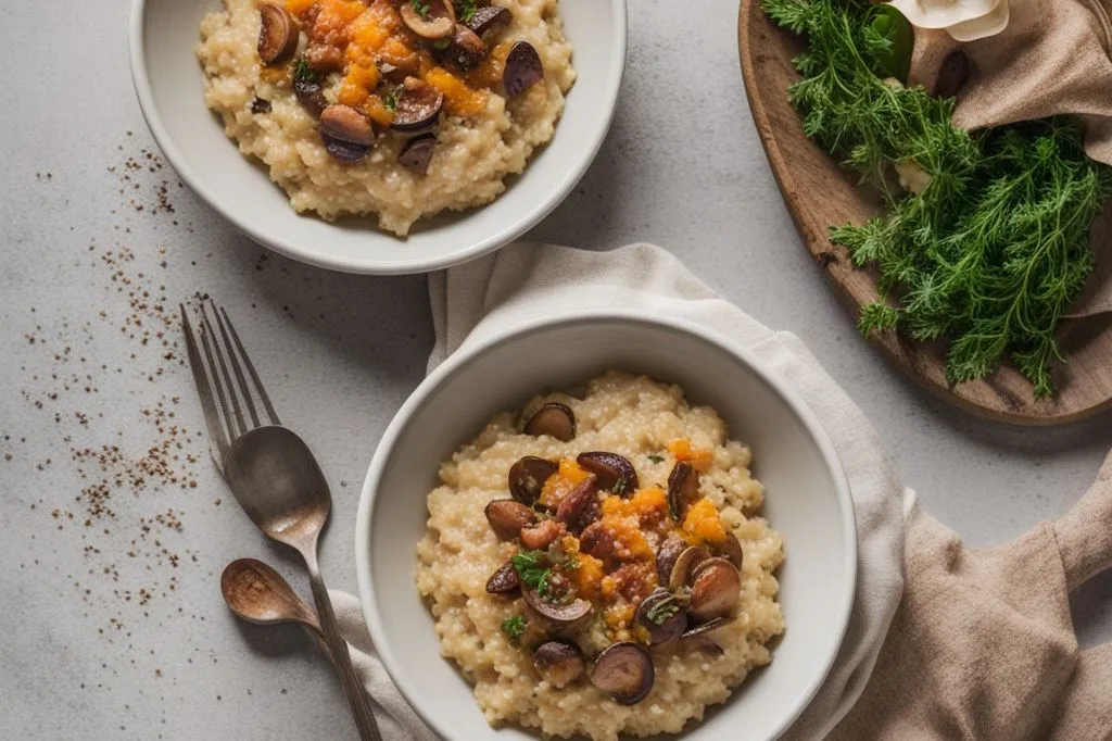 Un risotto dall'anima autunnale, dove la cremosità avvolgente del carnaroli incontra i sapori intensi del bosco e della terra. La zucca si sfalda in una dolcezza morbida, i funghi rilasciano il loro caratteristico umami e la pancetta aggiunge note affumicate e una piacevole croccantezza. Il parmigiano, mantecato a fine cottura, lega il tutto in un piatto ricco e soddisfacente.