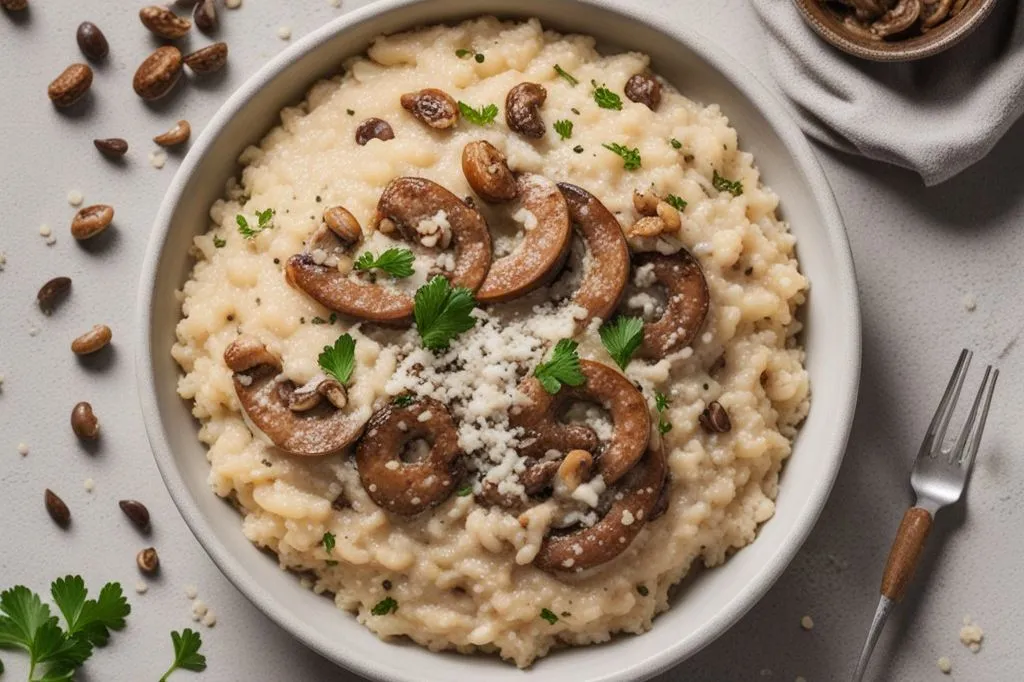 Un risotto che conquista per la sua cremosità avvolgente e il profondo sapore umami, dove la dolcezza della salsiccia si fonde con l'intensità terrosa dei funghi secchi. La mantecatura finale con Philadelphia e Parmigiano regala una consistenza setosa e un retrogusto ricco che si adagia perfettamente sul palato.
