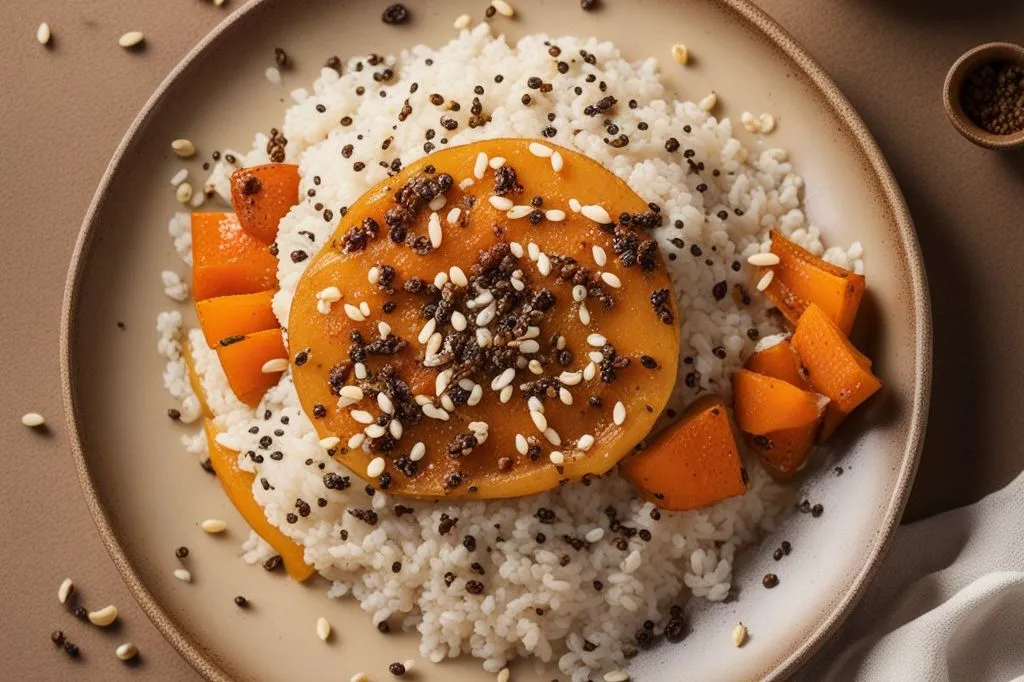 si sposa con la grana soda del riso integrale, mentre il tartufo aggiunge un tocco di lussuosa profondità aromatica. Il contrasto tra il dolce della zucca, il piccante del peperoncino e l'umami del tartufo crea un'esperienza sensoriale complessa e appagante.