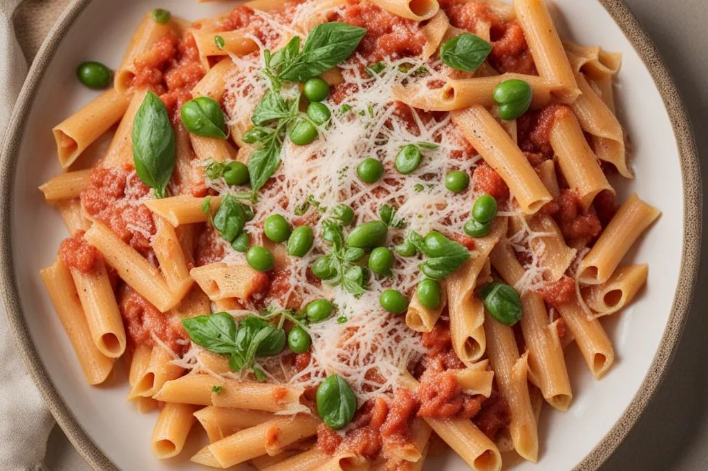 La scelta della pasta corta, come penne o rigatoni, cattura il sugo cremoso nelle cavità, regalando un morso ricco e saporito. I piselli, cotti direttamente nella salsa, mantengono una leggera croccantezza e un colore vivace, creando un contrasto piacevole con la cremosità della panna. L'olio extravergine aggiunto a crudo, se desiderato, può arricchire il piatto con un tocco fruttato e fresco.
