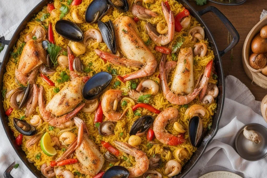 Lo zafferano, vero protagonista aromatico, tinge il riso di un giallo dorato e regala quel caratteristico profumo terroso e leggermente amaro che contraddistingue la paella autentica. I peperoni, cotti fino a diventare morbidi e dolci, aggiungono una nota di freschezza vegetale che taglia la ricchezza degli altri ingredienti.