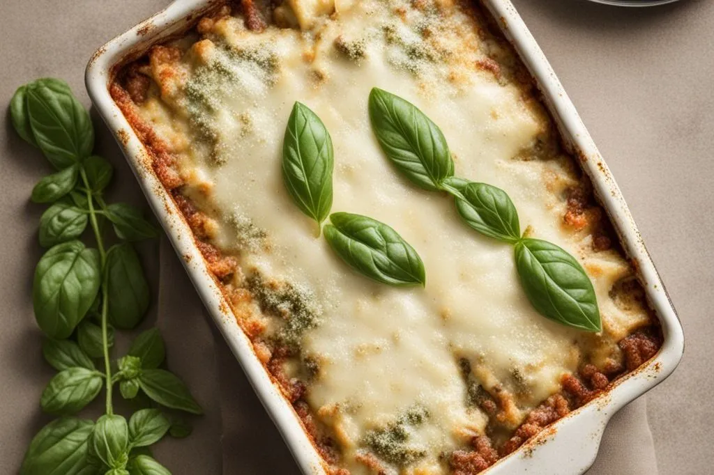 sapore intenso ma equilibrato, con strati di pasta che si fondono con la cremosità del formaggio e l'aromaticità delle foglie di basilico.