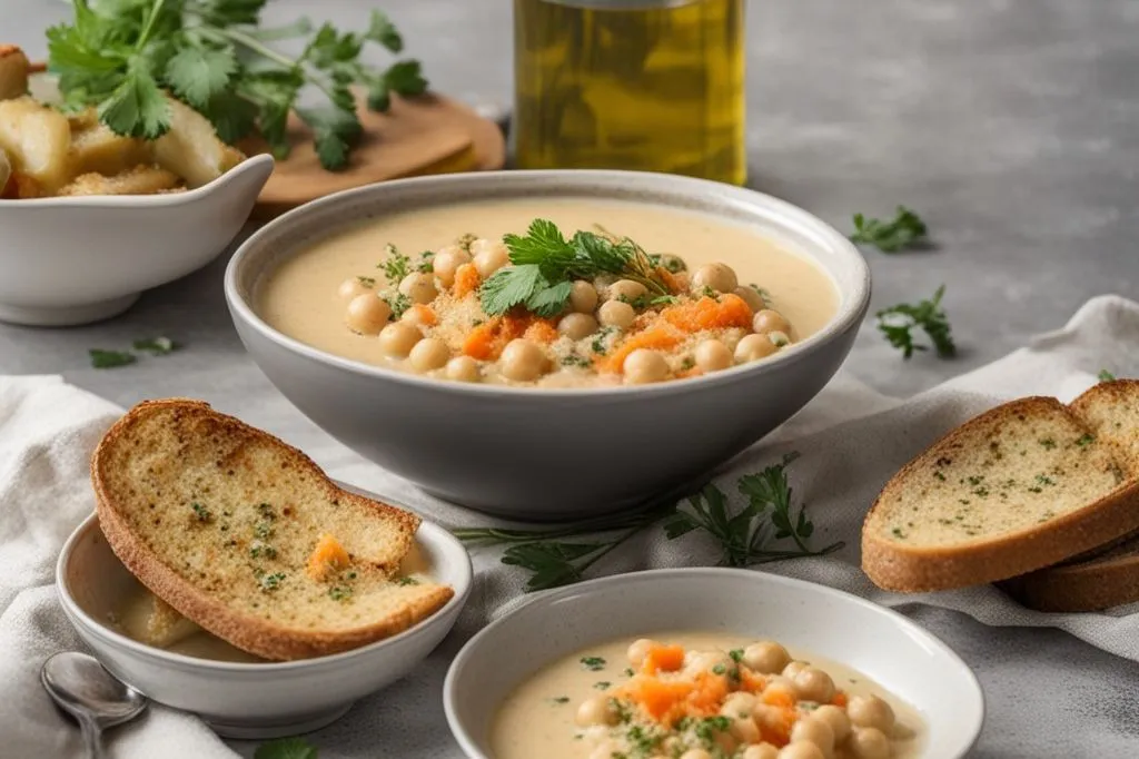 Una vellutata che unisce la dolcezza delle carote alla rusticità delle patate, arricchita dalla consistenza pastosa dei ceci. Il risultato è una crema setosa e avvolgente, perfetta per una cena leggera ma soddisfacente, che scalda il palato con i suoi profumi di verdura cotta e un delicato fondo di cipolla.