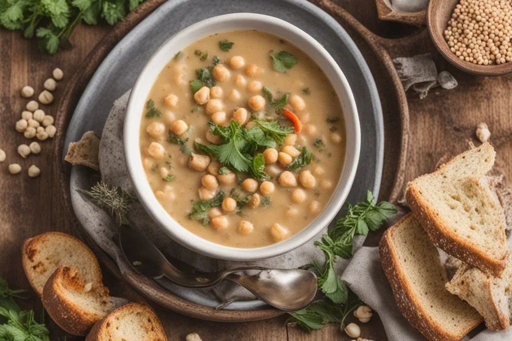 Una zuppa rustica e corroborante, dove i legumi si fondono in un brodo denso e avvolgente, arricchito dalla nota terrosa e leggermente piccante della curcuma. La consistenza è cremosa ma non uniforme, con i ceci che mantengono una piacevole tenerezza e i fagioli che si sfaldano delicatamente, regalando un'esperienza confortevole e soddisfacente.