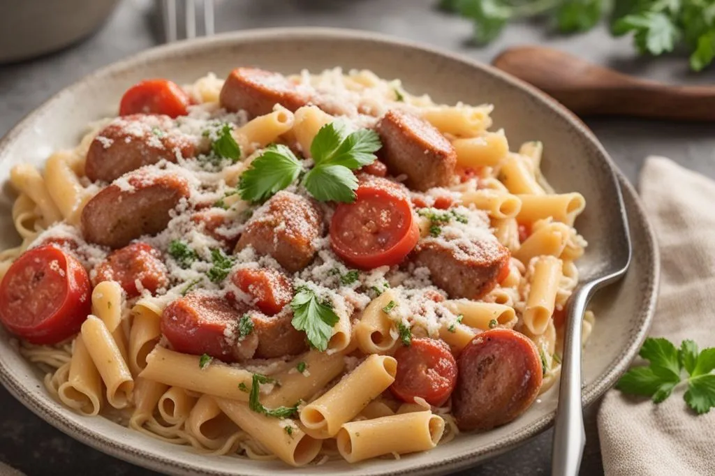 L'aggiunta della panna da cucina, inserita a fine cottura, ammorbidisce l'acidità del pomodoro e lega gli ingredienti in una consistenza liscia e setosa, perfetta per avvolgere ogni formato di pasta. Ideale per una cena in famiglia o un pranzo domenicale senza troppe pretese, questa ricetta unisce la praticità di una preparazione in un'unica pentola alla soddisfazione di un piatto sostanzioso e gratificante.
