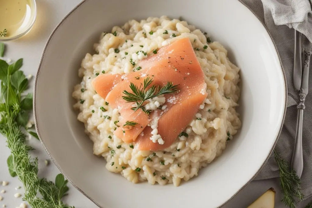La magia nasce dal dialogo tra gli ingredienti: la dolcezza carnosa delle pere, tagliate a julienne, smorza la piccantezza erborinata del gorgonzola, mentre il salmone affumicato, con la sua nota sapida e setosa, lega il tutto. In bocca, è un susseguirsi di sensazioni: il calore del riso, lo scioglievole del formaggio, la freschezza croccante della frutta e l'ombra affumicata del pesce, tutto fuso in una mantecatura perfetta grazie al parmigiano e a un filo d'olio a crudo.