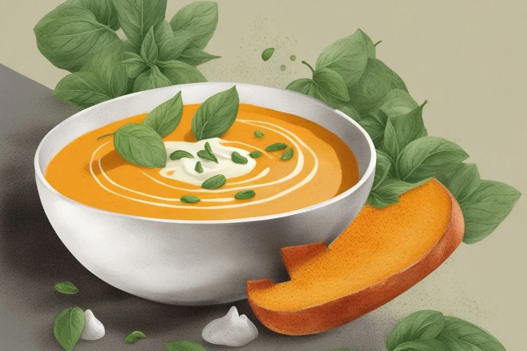 Una vellutata che unisce la dolcezza rustica della zucca alla freschezza vibrante del lime e del basilico. La consistenza è morbidamente setosa, avvolgente, mentre l'aroma sprigiona note terrose dello zenzero e dello scalogno, bilanciate dalla punta agrumata finale. La crema al basilico e lime, aggiunta a crudo, crea un contrasto di temperature e sapori, con la panna vegetale che ammorbidisce l'acidità in un equilibrio perfetto.