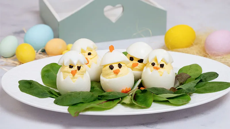 Un inno alla primavera che si traduce in un antipasto di rara eleganza, dove la semplicità degli ingredienti si sublima in un gioco di forme e colori che seduce lo sguardo prima ancora del palato. Queste uova decorate sono una promessa di festa, un concentrato di sapori puri che dialogano tra loro con armonia, trasformando un classico della tradizione pasquale in un'esperienza sensoriale raffinata e sorprendente.
