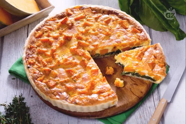Il segreto risiede nel dialogo perfetto tra la zucca, che si scioglie in una dolcezza caramellata, e le bietole, che regalano una nota minerale e una piacevole consistenza. La sfoglia brisè, friabile e profumata di timo, fa da scrigno dorato a una crema di uova e panna che lega gli ingredienti in un insieme armonioso, dove il Grana Padano aggiunge un tocco sapido e un retrogusto complesso.