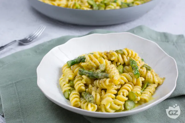 semplicemente una pasta con verdure, ma un'emulsione perfetta dove la dolcezza terrosa degli asparagi si fonde con la sapidità del formaggio in un abbraccio vellutato.