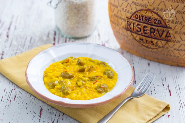 rusticità della salsiccia si fonde con l'eleganza dorata dello zafferano in un equilibrio perfetto. Ogni cucchiaiata è un viaggio nei sapori autentici della tradizione lombarda, capace di riscaldare il palato e l'anima.