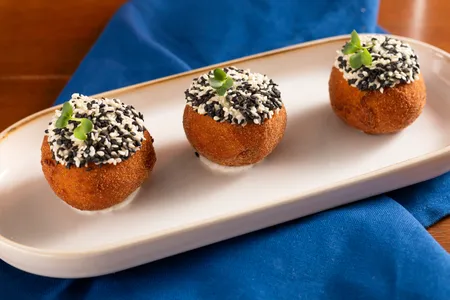 Polpette croccanti di gamberi avvolte in una doppia panatura, fritte alla perfezione e servite con una maionese vegetale al lime cremosa. Perfette per un aperitivo elegante o come stuzzichino raffinato.