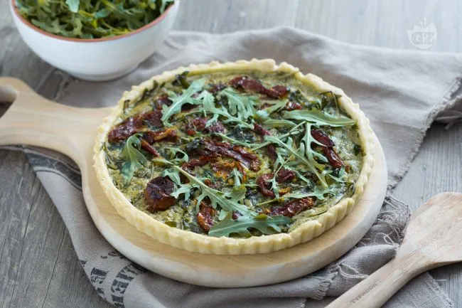 Torta salata di rucola e pomodori secchi